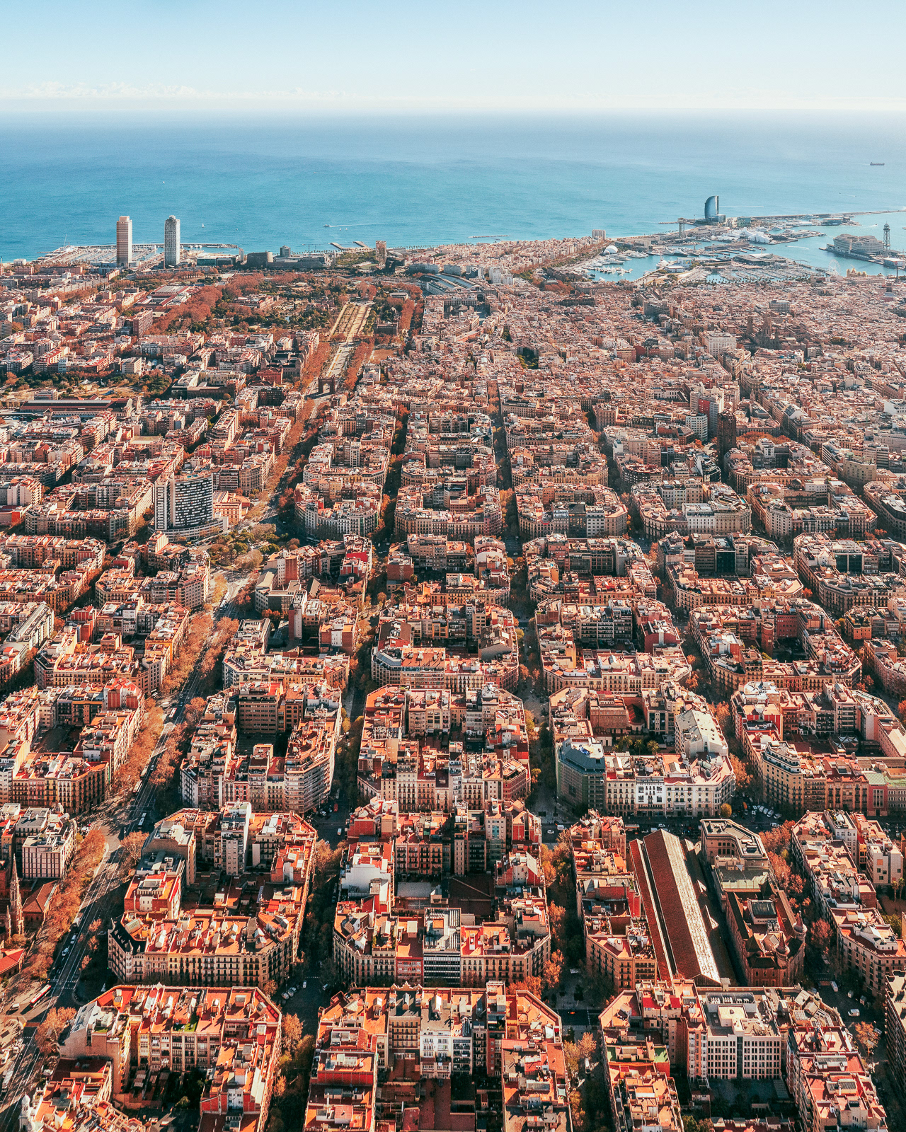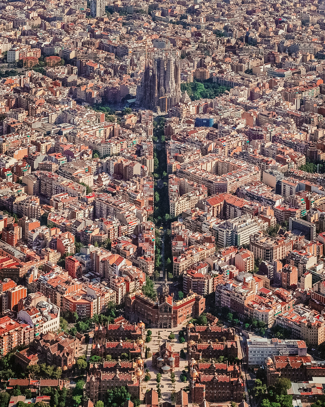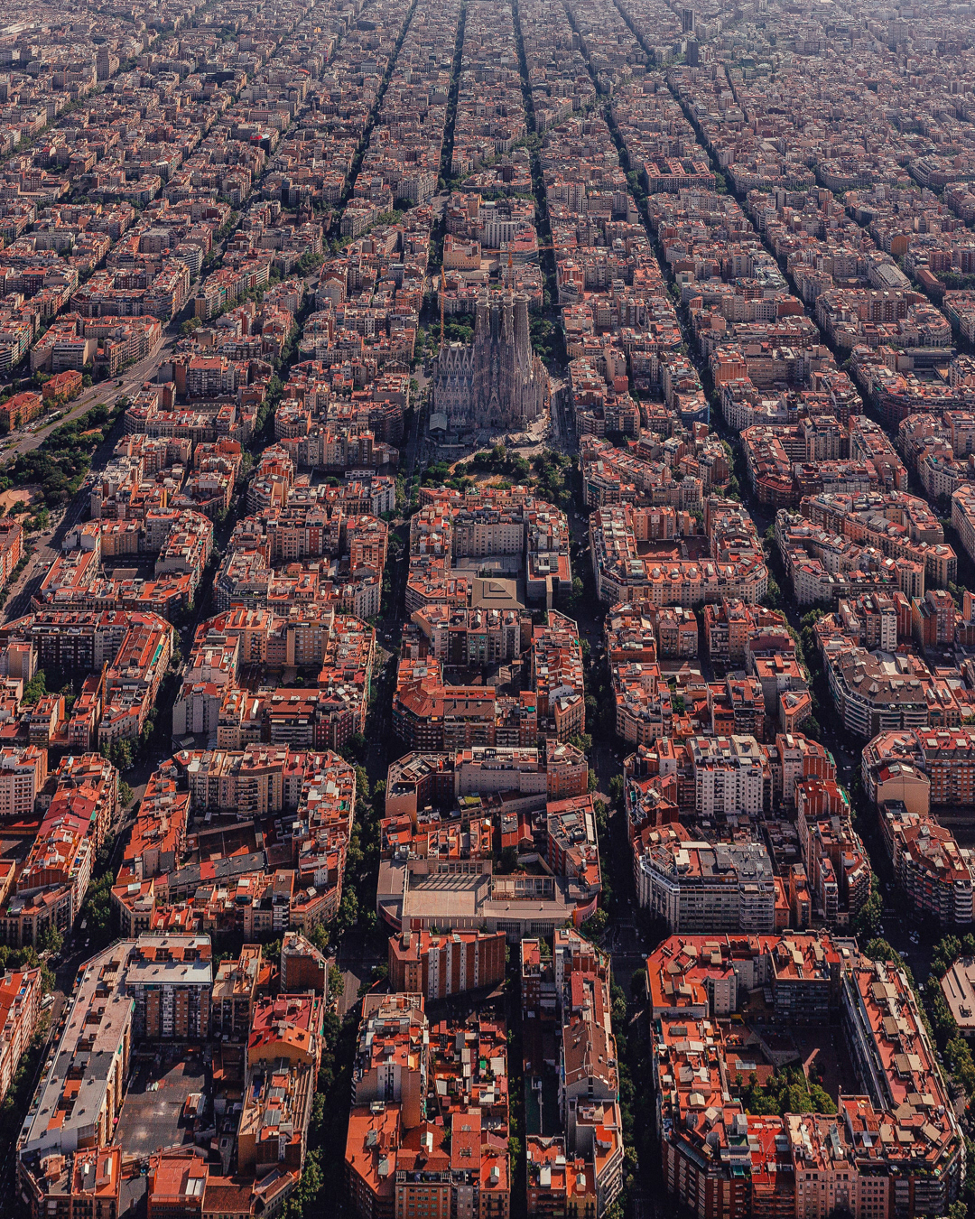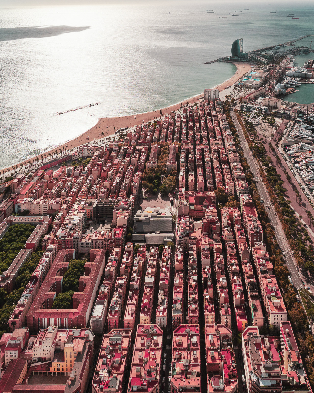 From the sky, Barcelona feels alive in color and pattern. The city stretches toward the sea, a canvas of sunlit rooftops, winding alleys, and bold geometry. Gaudí’s creations rise like sculptures, and the grid of the Eixample flows toward the shimmering blue coast. These images explore the harmony between architecture and nature, between movement and calm, that makes Barcelona endlessly captivating.
