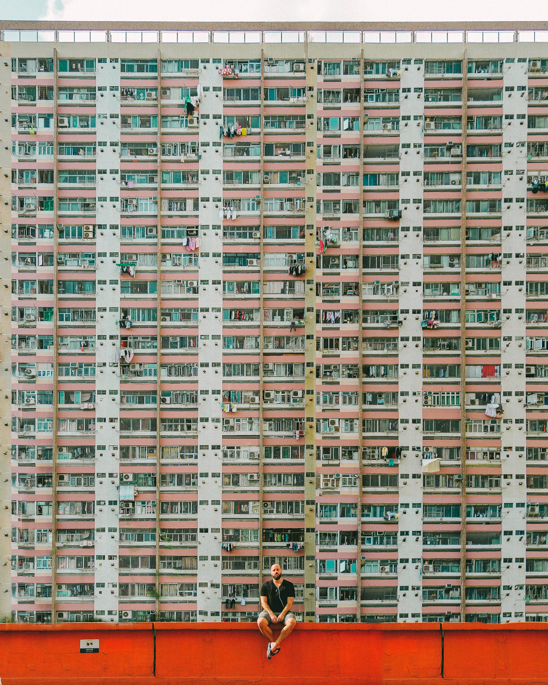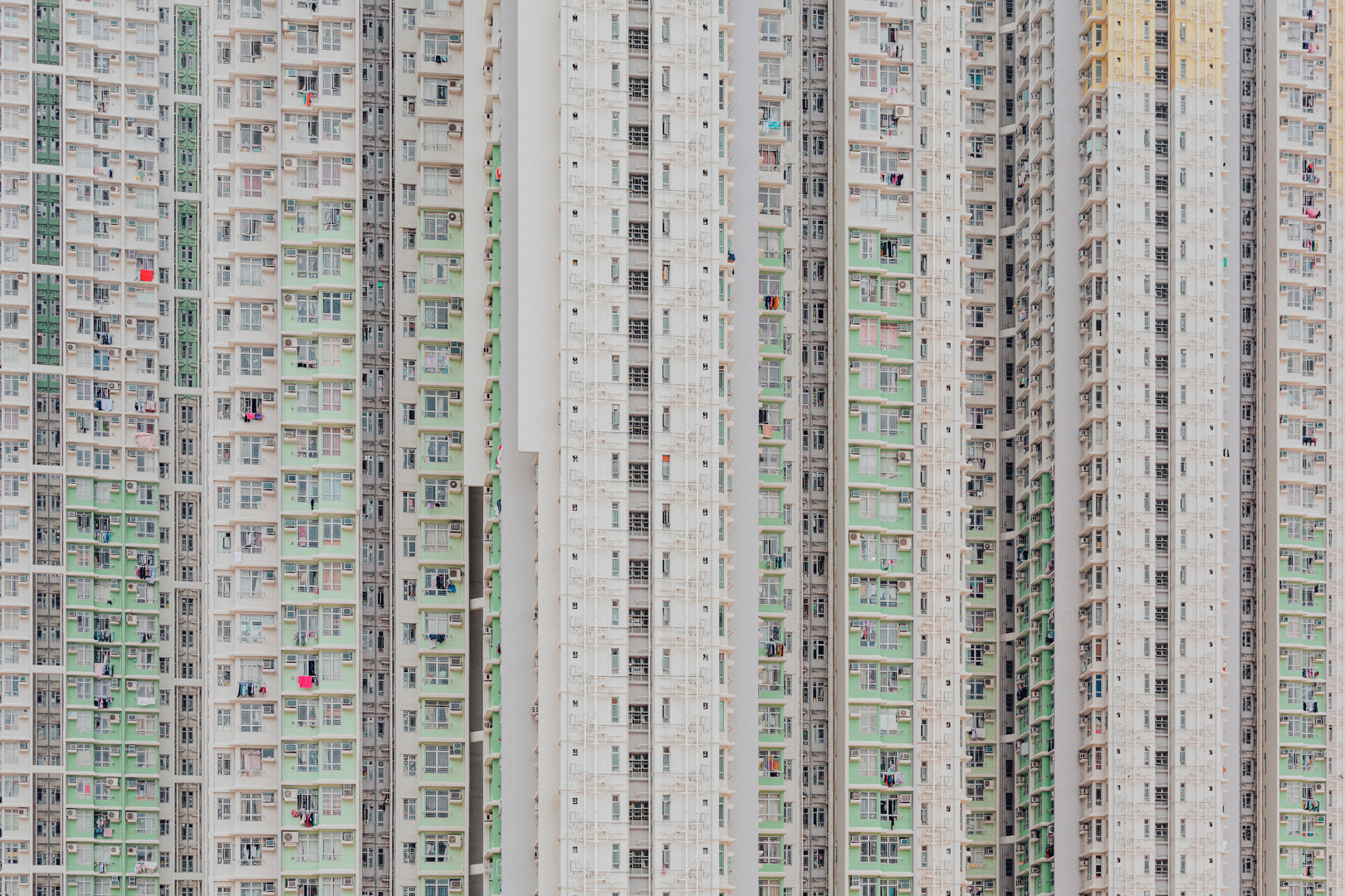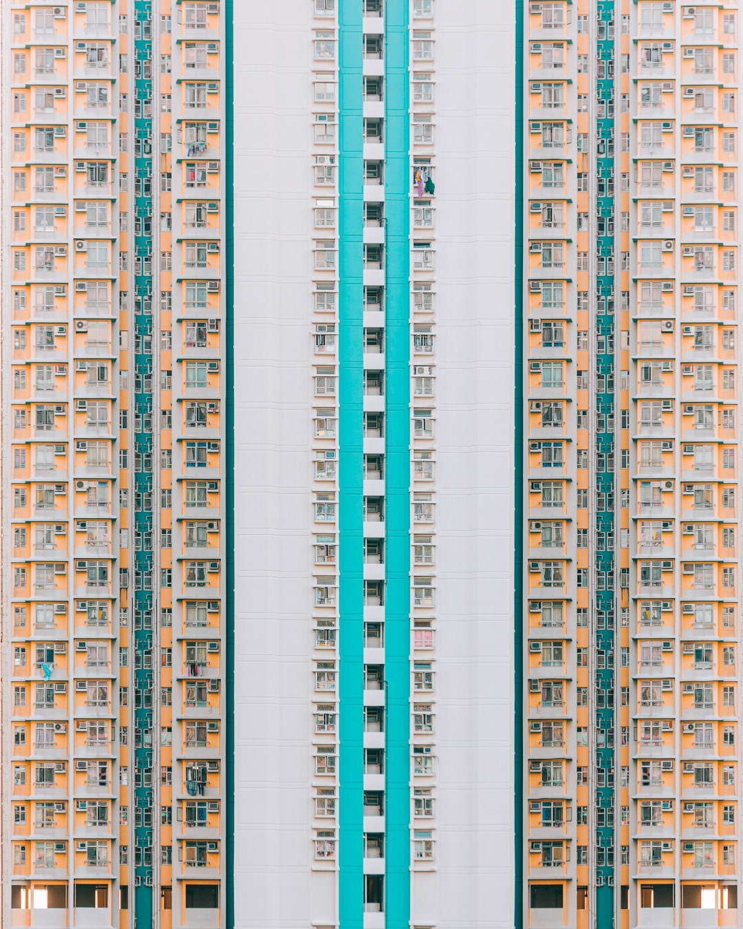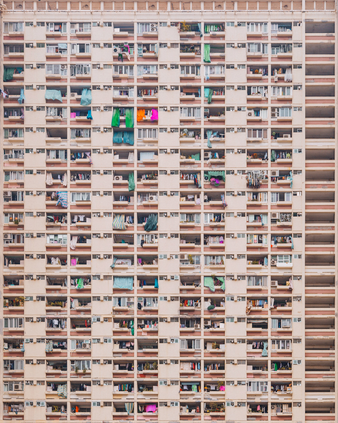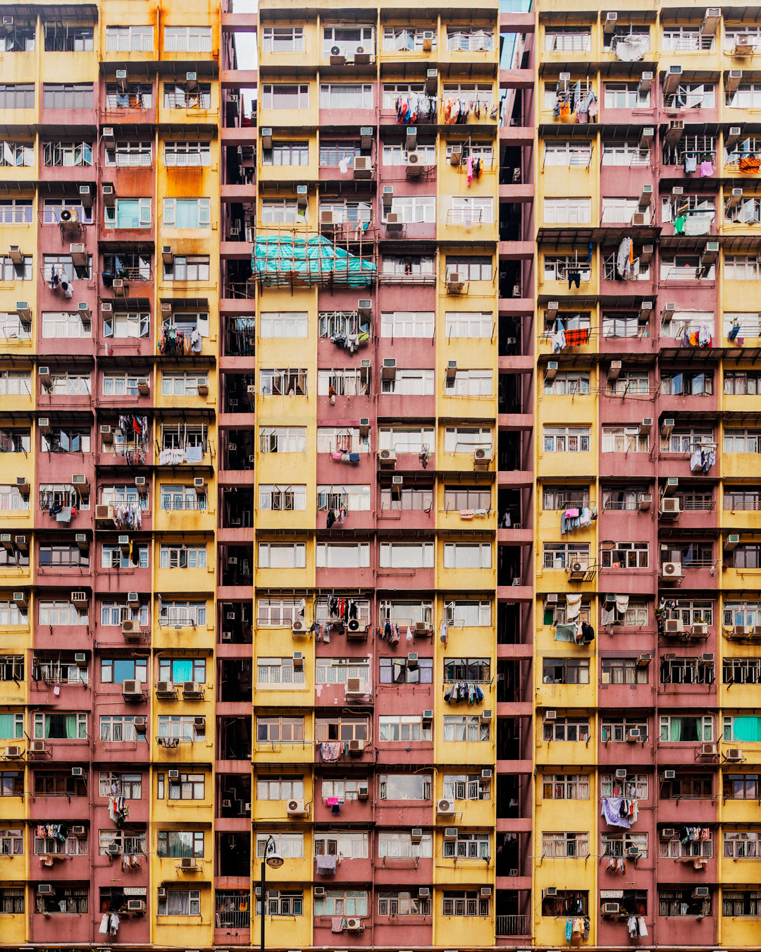 The vibrant, chaotic beauty of Hong Kong’s busy facades—dense layers of signage, air conditioners, laundry, and life stacked high across towering buildings. Each image reveals the city’s unique vertical rhythm, where urban density meets visual overload in a dynamic expression of daily life and architectural adaptation.