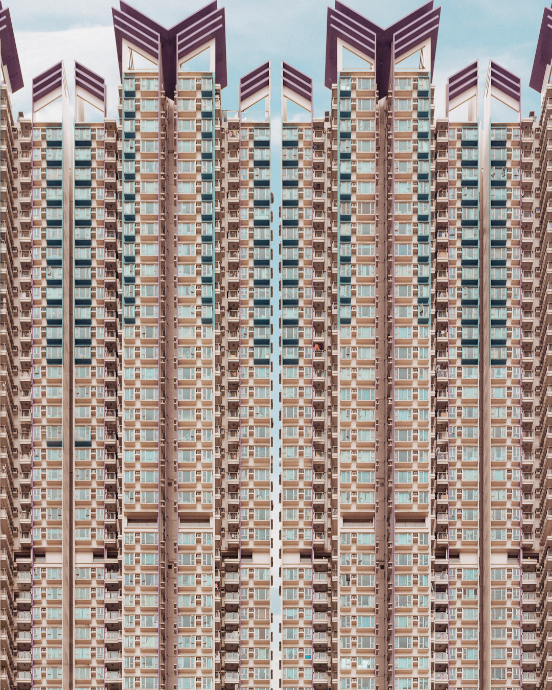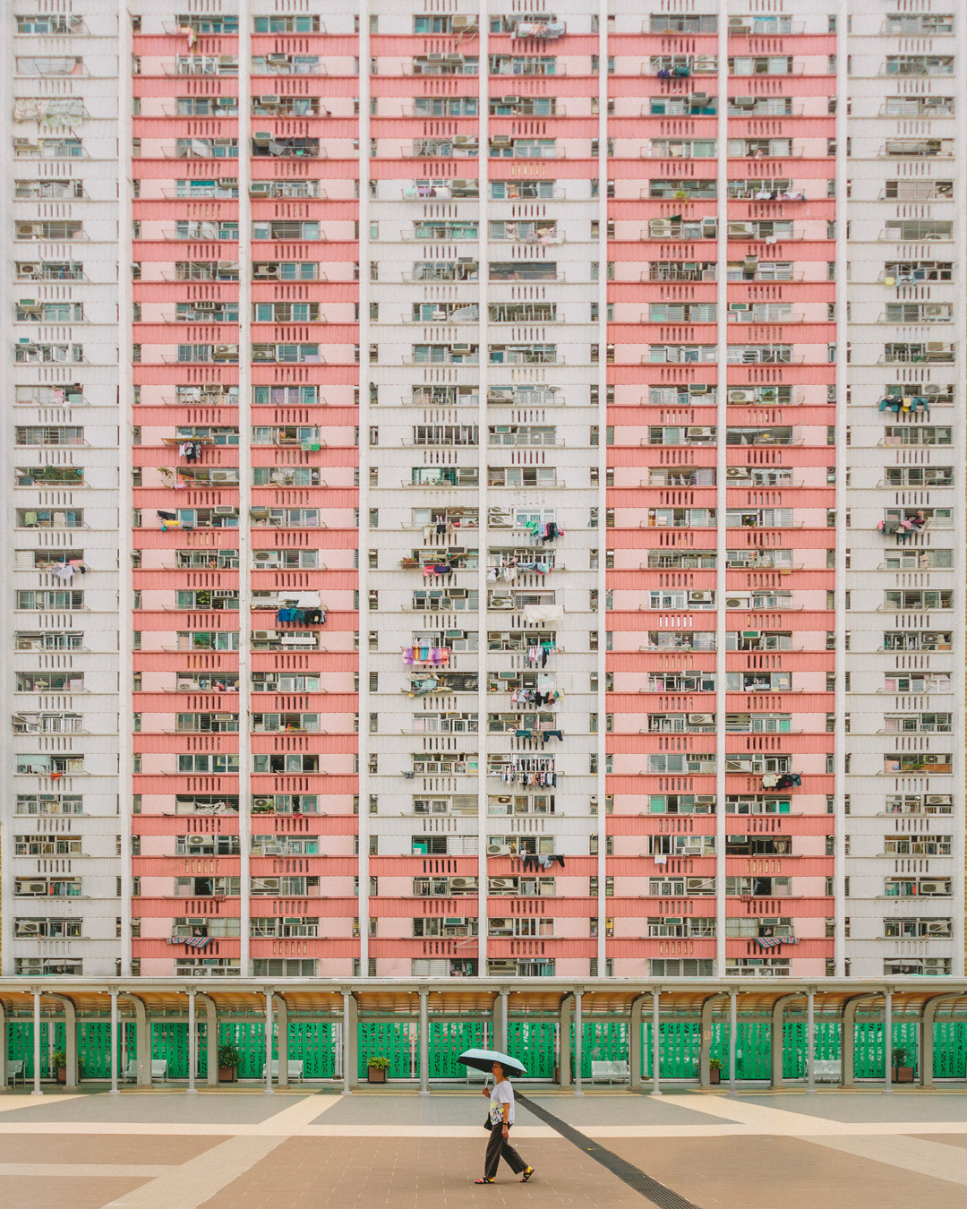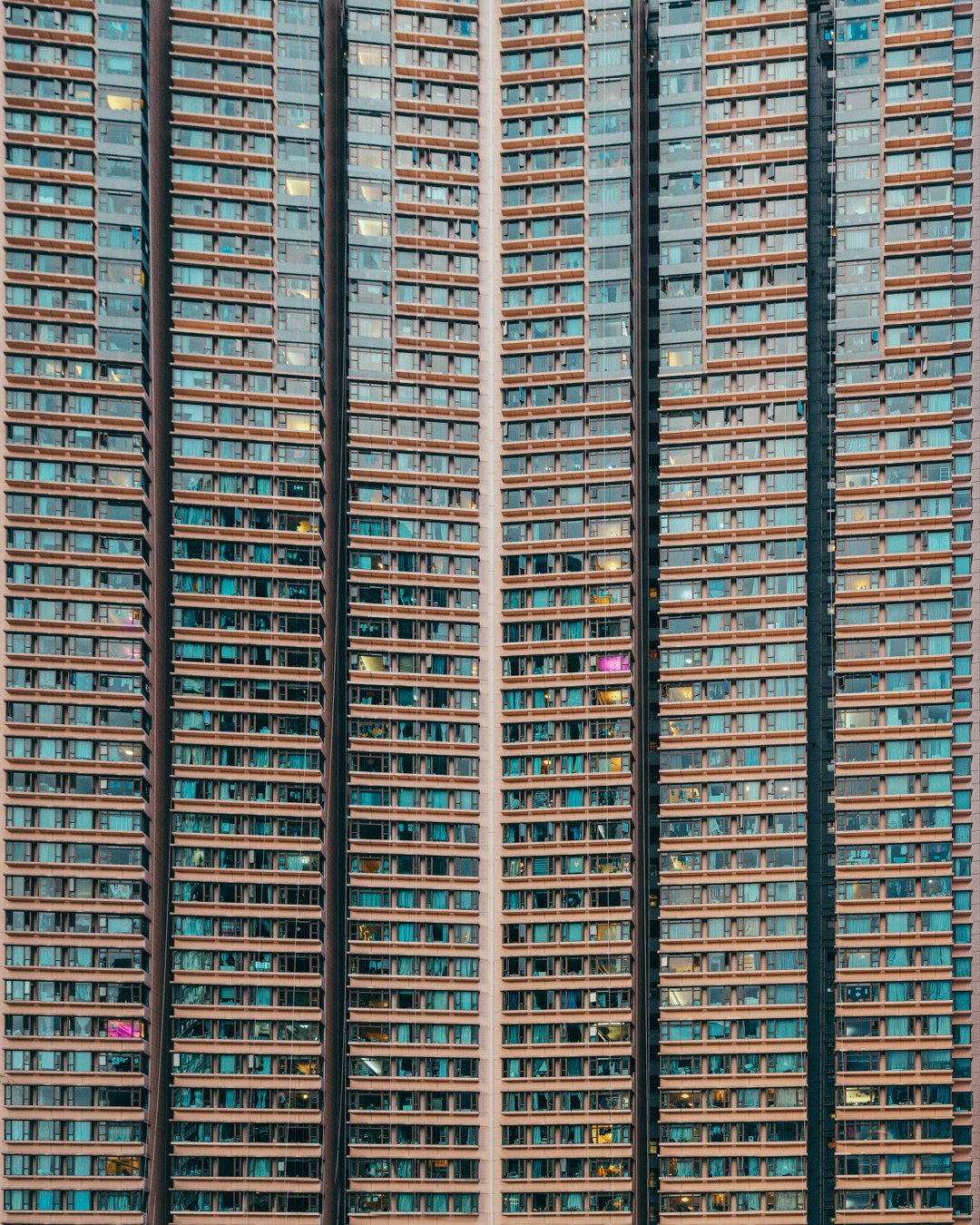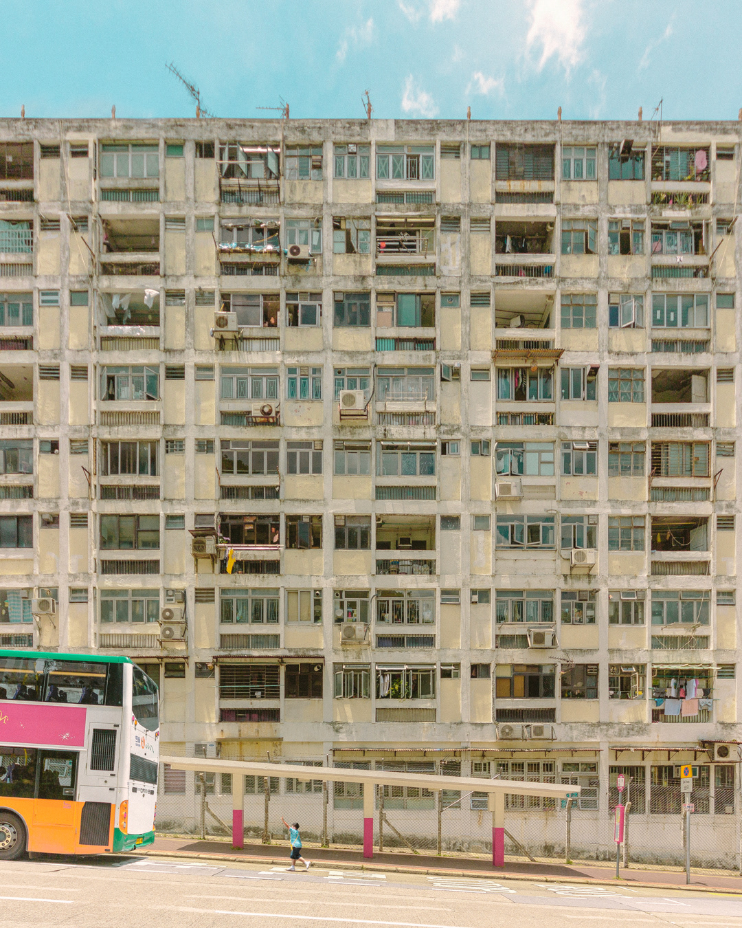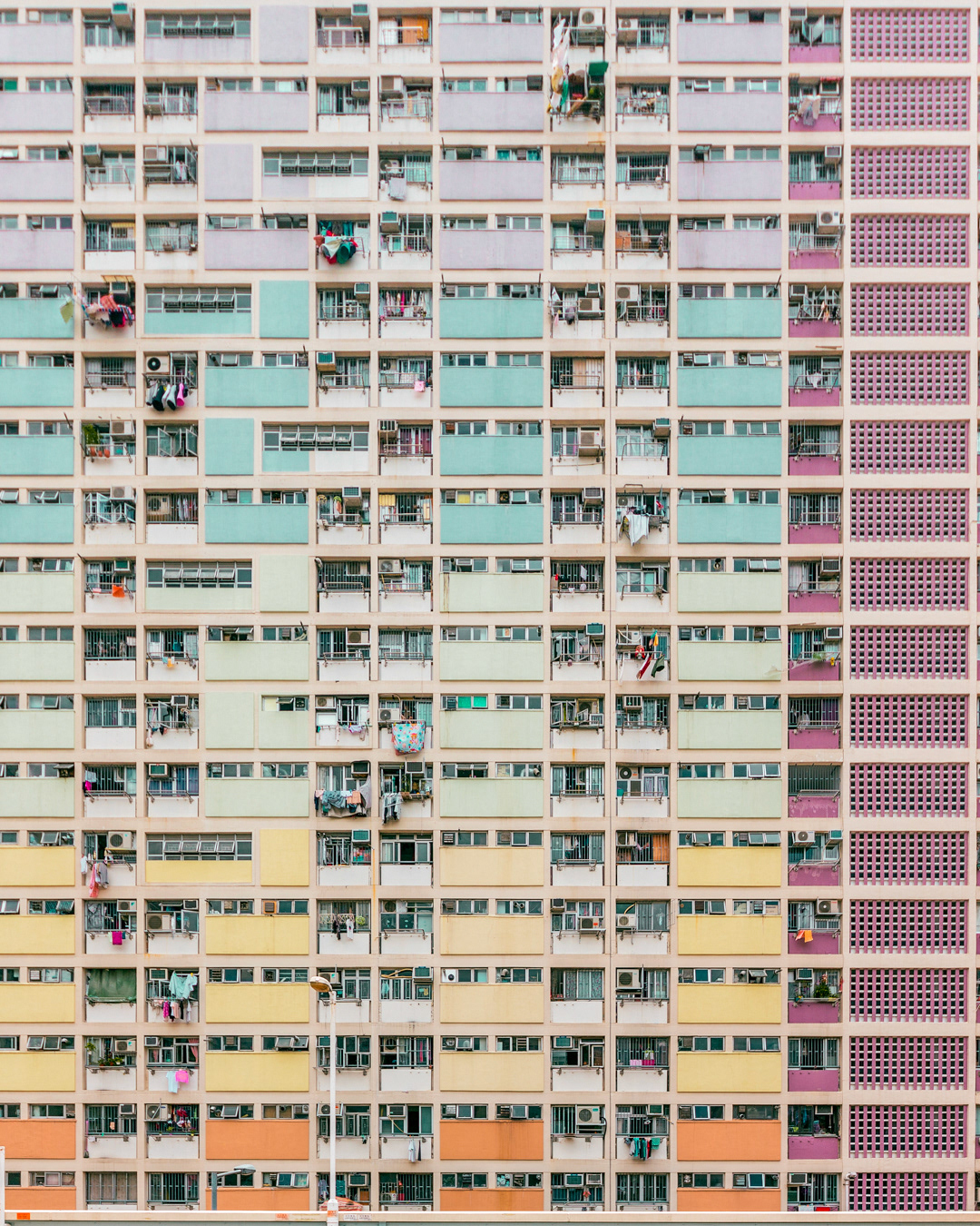 The vibrant, chaotic beauty of Hong Kong’s busy facades—dense layers of signage, air conditioners, laundry, and life stacked high across towering buildings. Each image reveals the city’s unique vertical rhythm, where urban density meets visual overload in a dynamic expression of daily life and architectural adaptation.