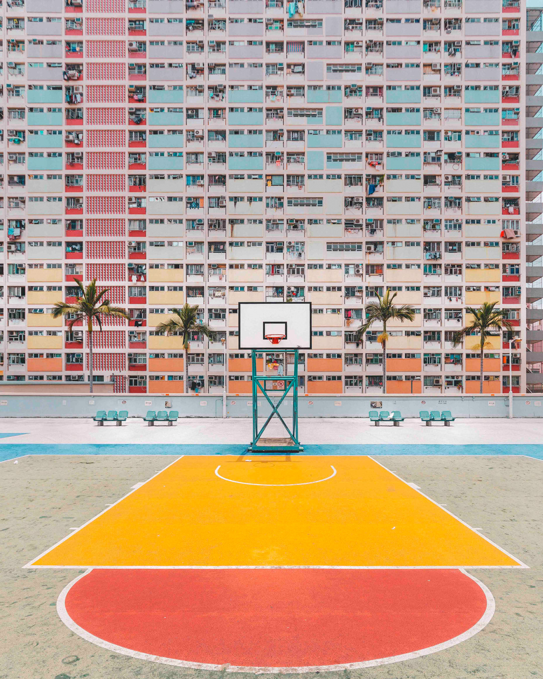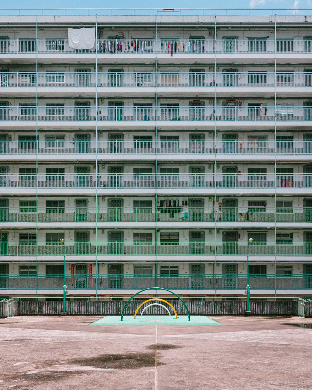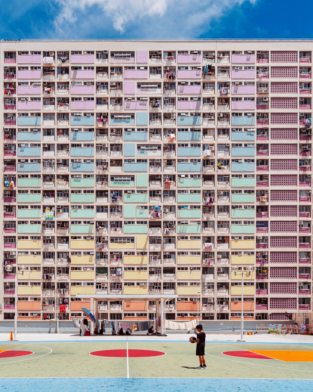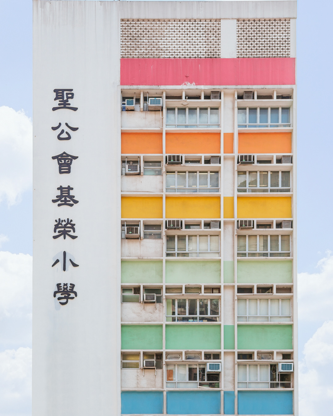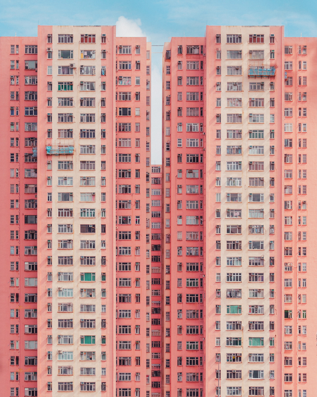 The vibrant, chaotic beauty of Hong Kong’s busy facades—dense layers of signage, air conditioners, laundry, and life stacked high across towering buildings. Each image reveals the city’s unique vertical rhythm, where urban density meets visual overload in a dynamic expression of daily life and architectural adaptation.
