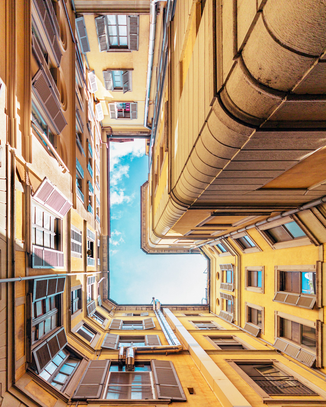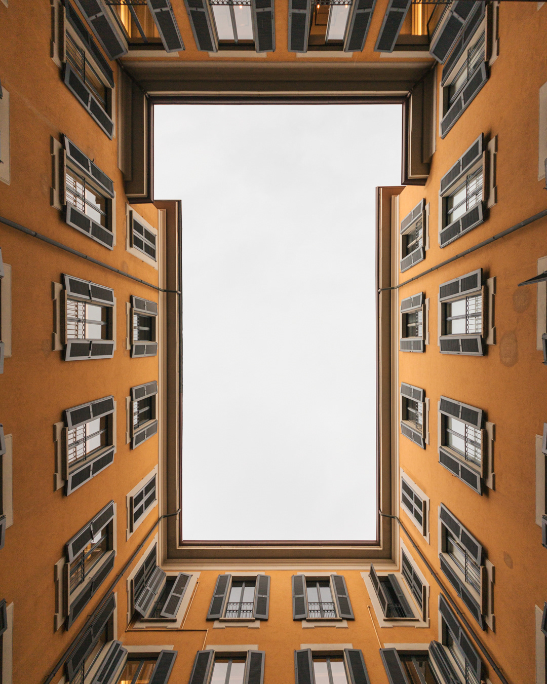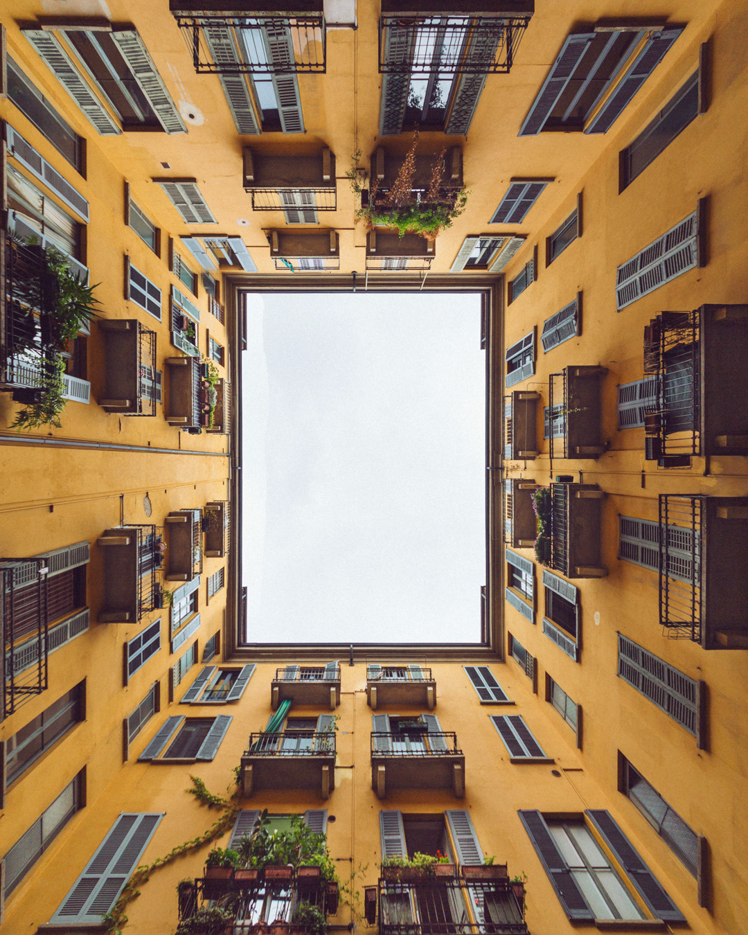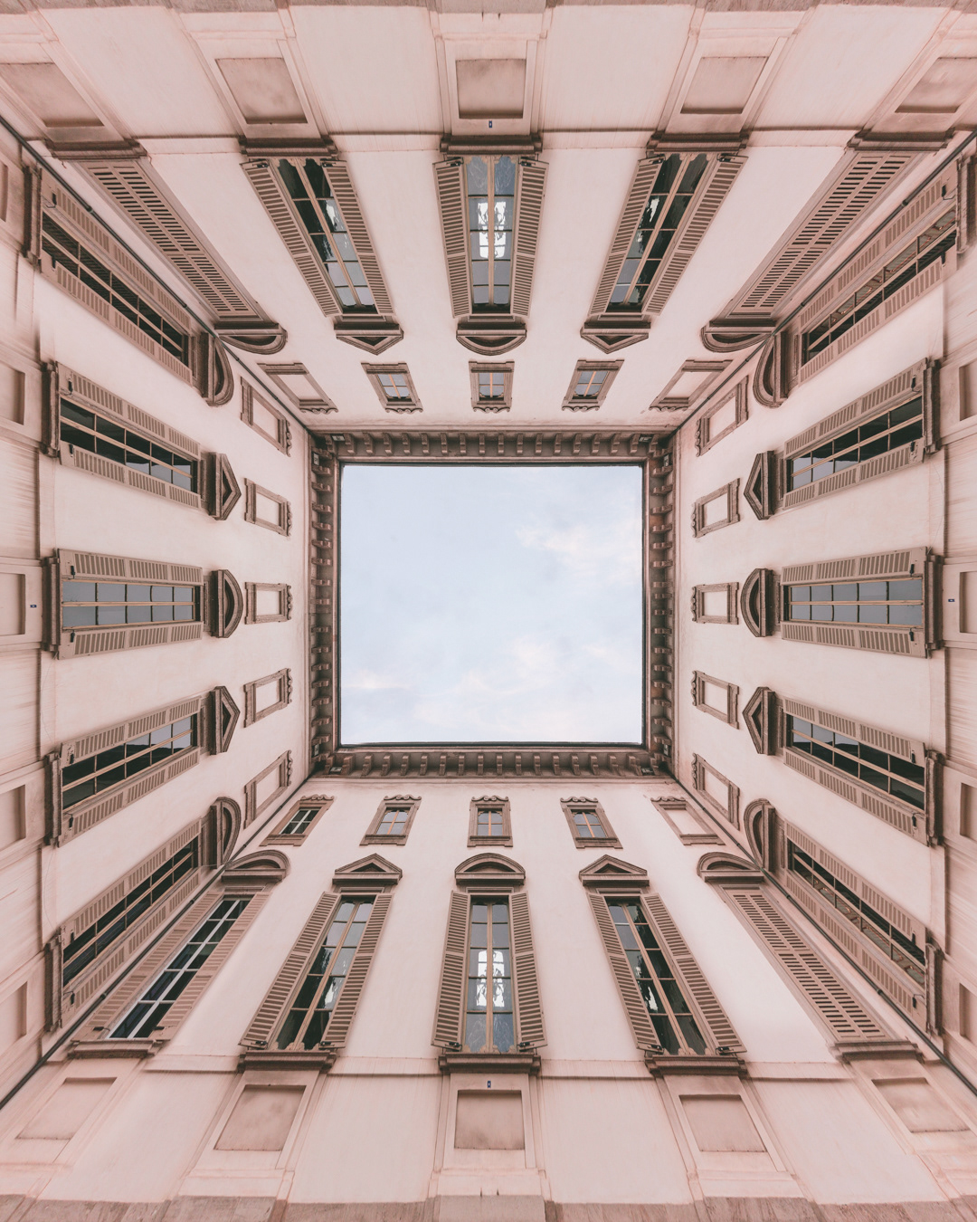 This photo series captures Milan from below, focusing on lookup views of ceilings, patios, and open skies. By shifting the gaze upward, the images reveal hidden geometries and quiet details of the city’s architecture often overlooked in daily life.