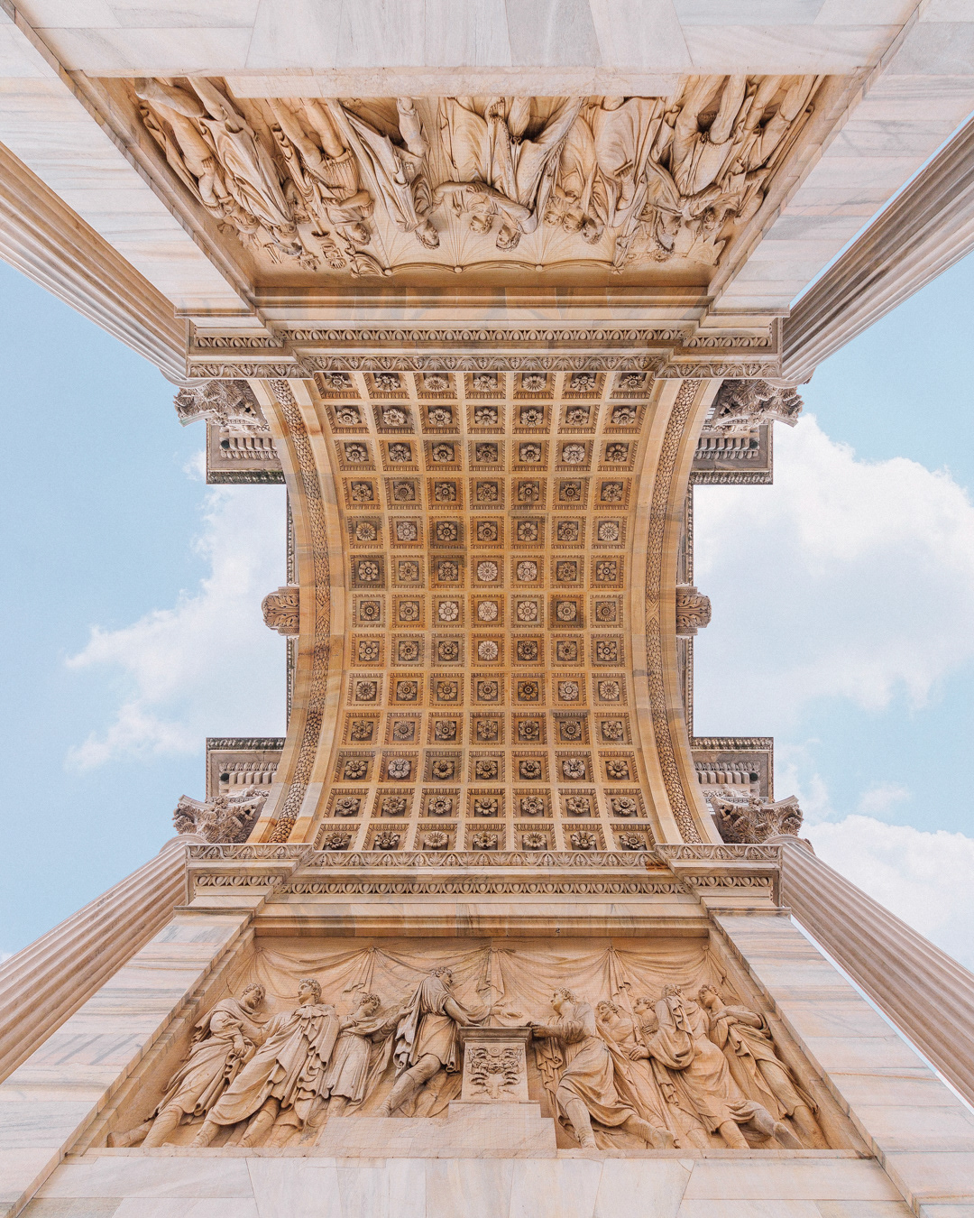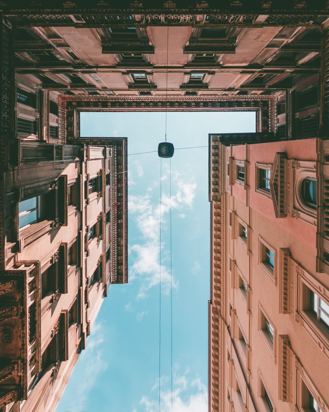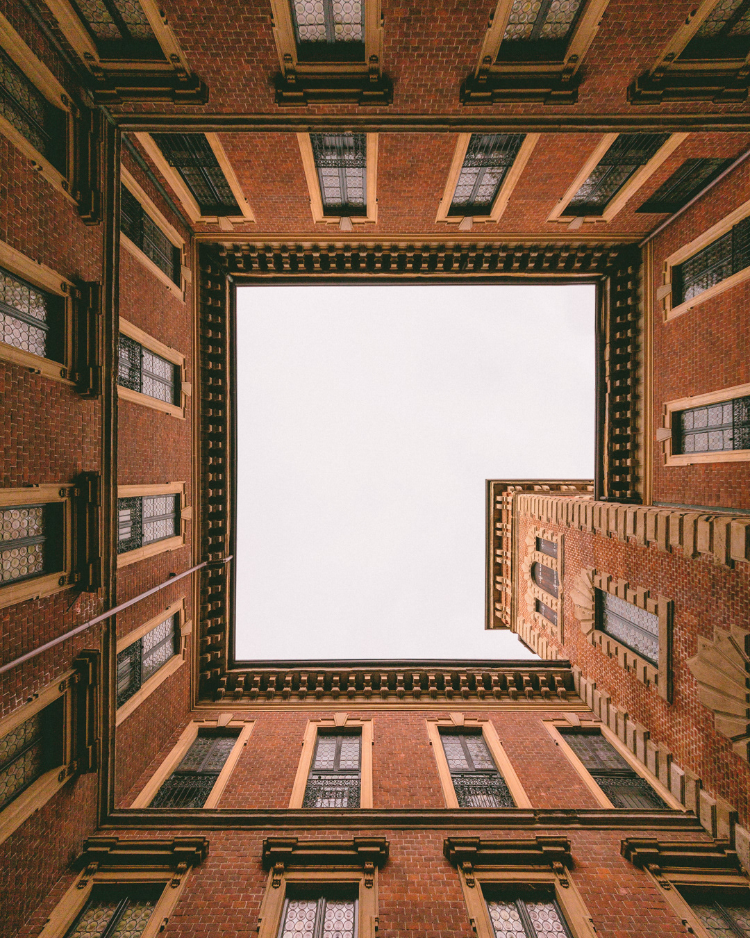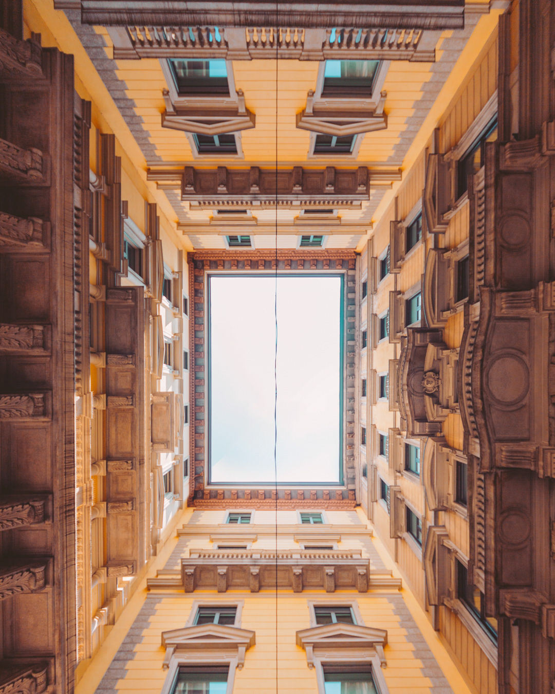 This photo series captures Milan from below, focusing on lookup views of ceilings, patios, and open skies. By shifting the gaze upward, the images reveal hidden geometries and quiet details of the city’s architecture often overlooked in daily life.