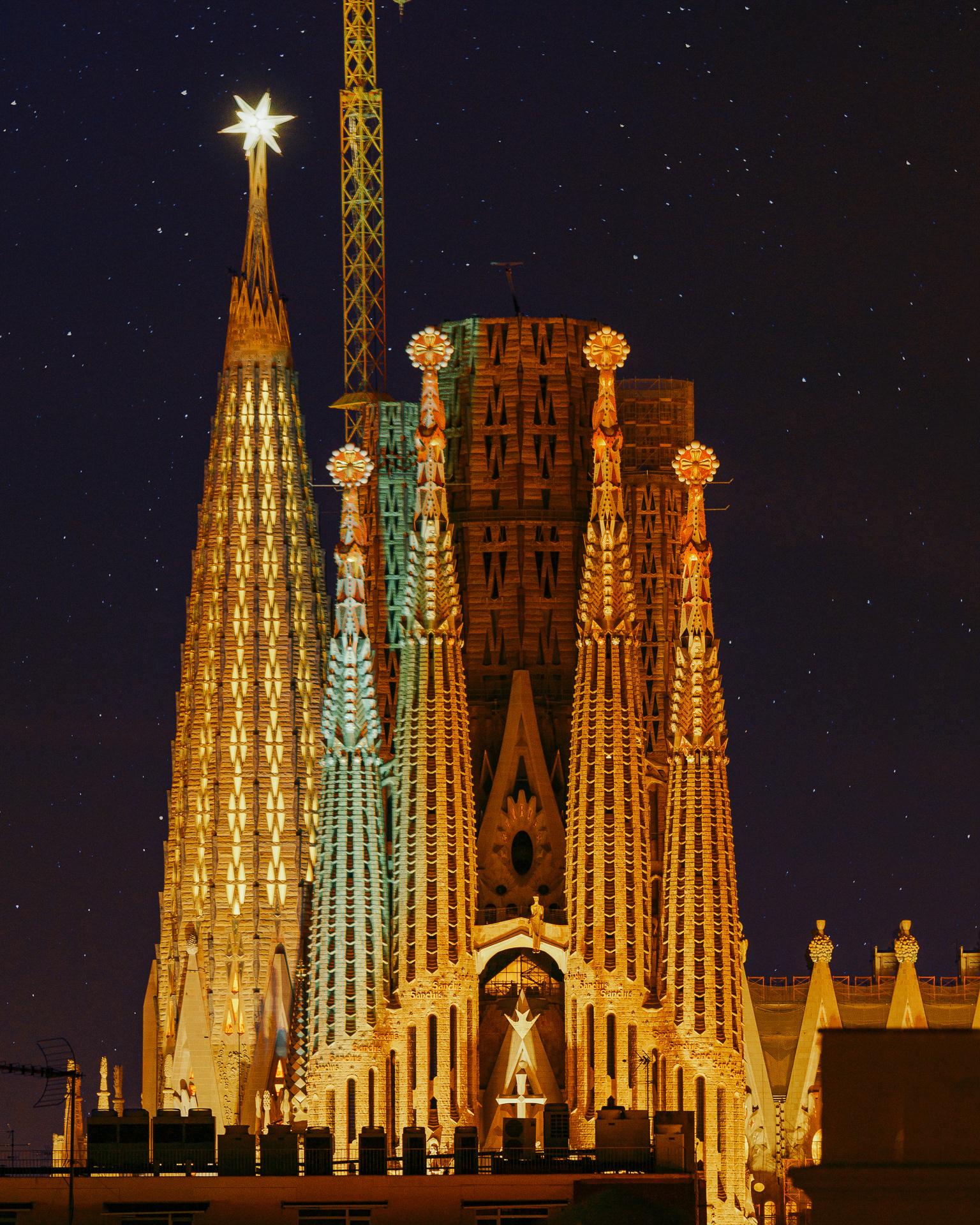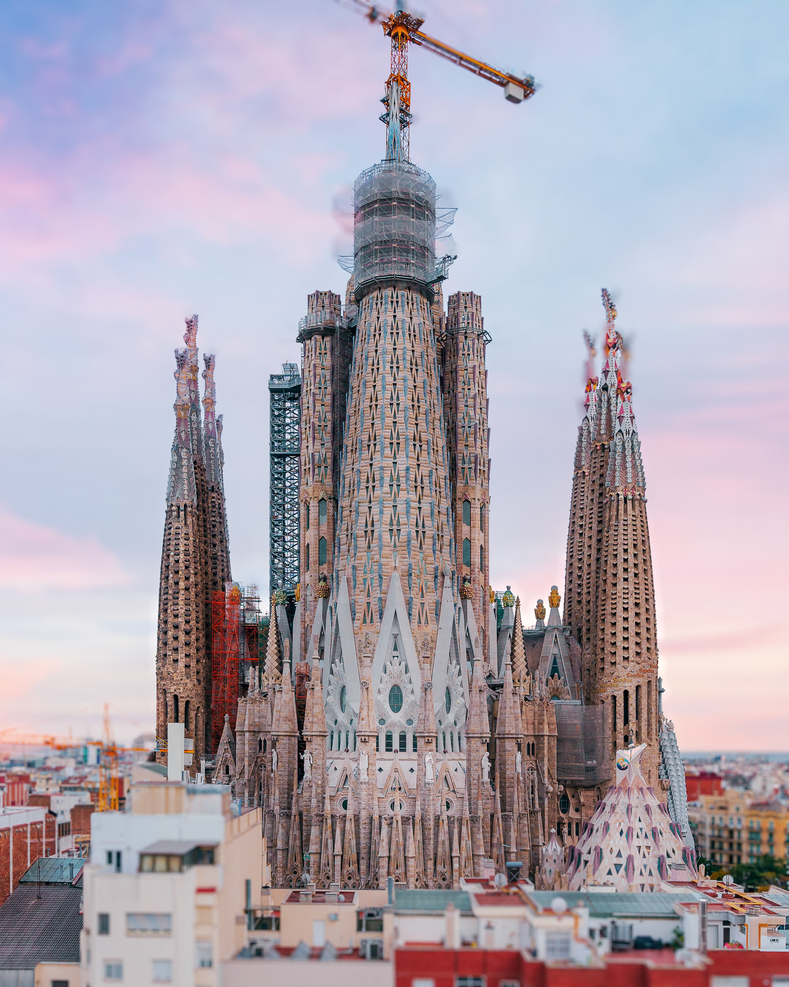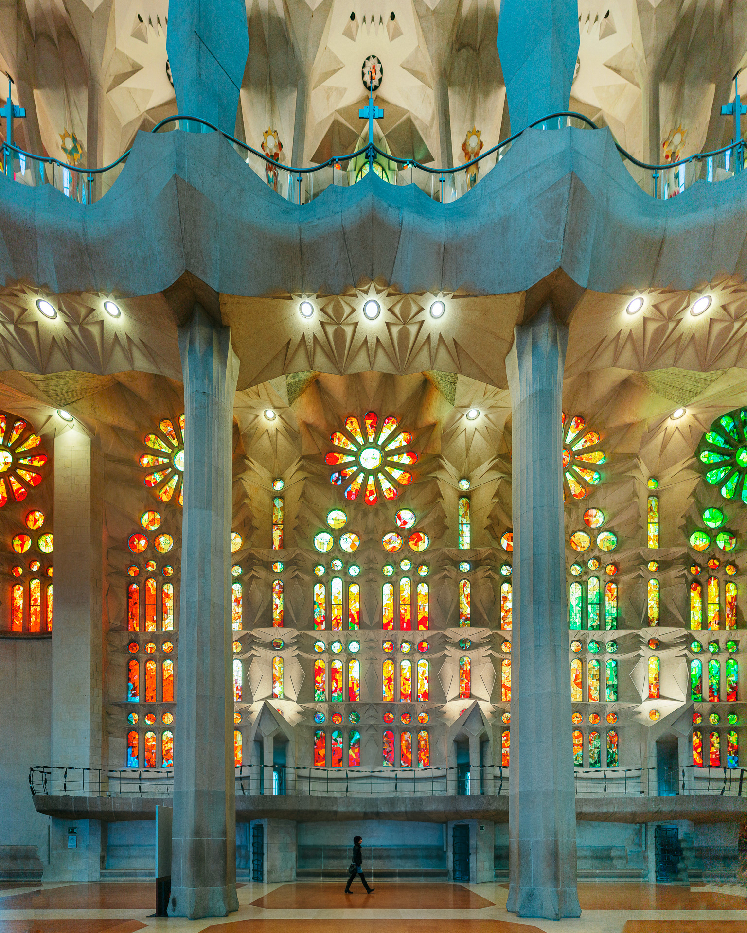The Sagrada Família rises like a living sculpture, its organic forms and towering spires shaped by Gaudí’s devotion to nature and faith. Inside, colored light pours through vast stained-glass panels, shifting across stone columns that branch like a forest. Every angle reveals a dialogue between symbolism, geometry, and the unfinished ambition that continues to define this iconic basilica.