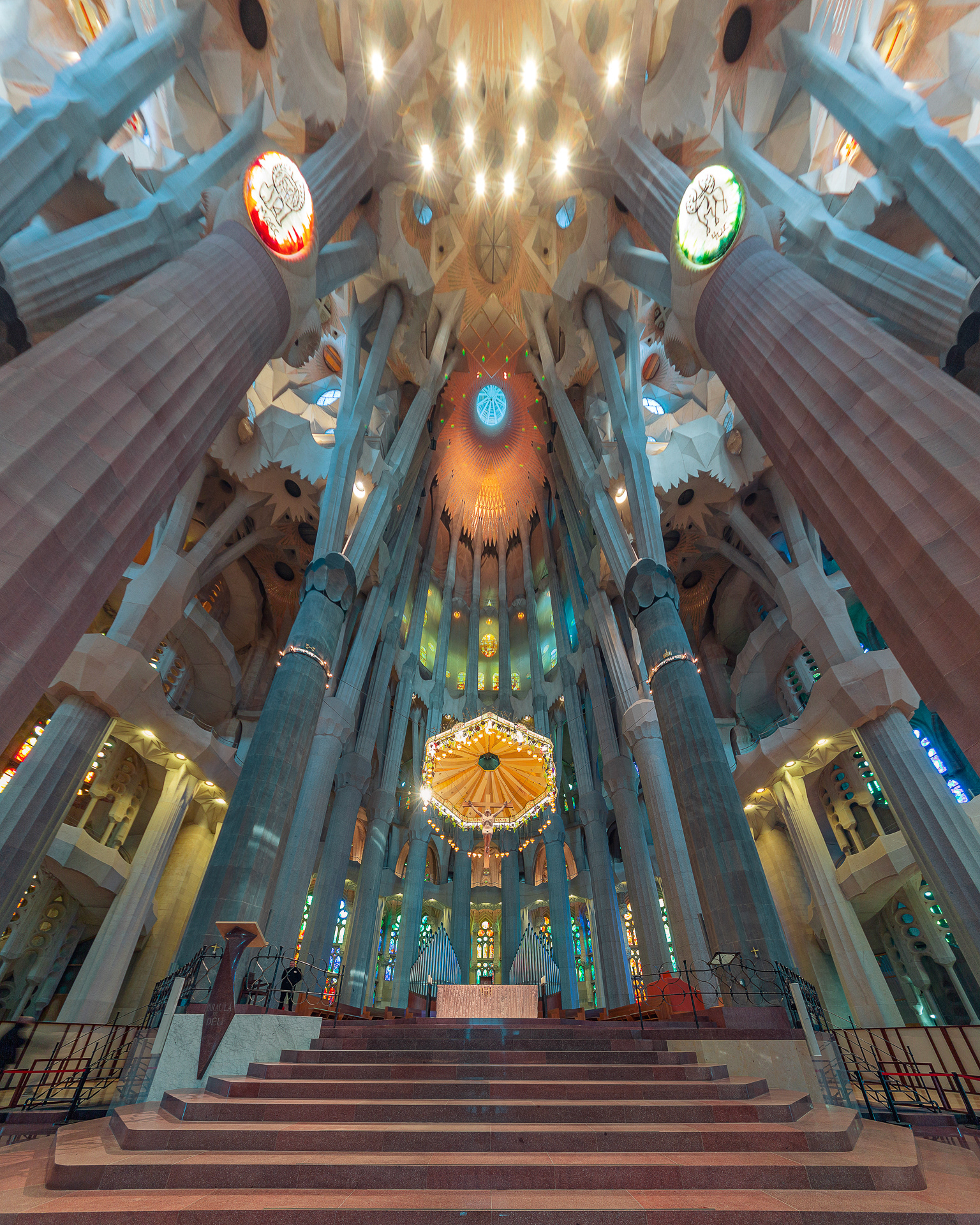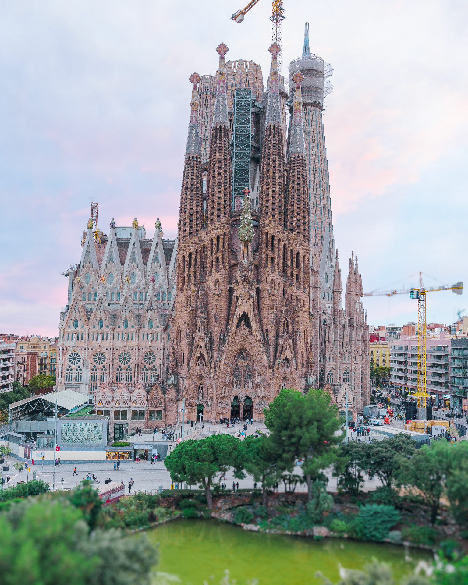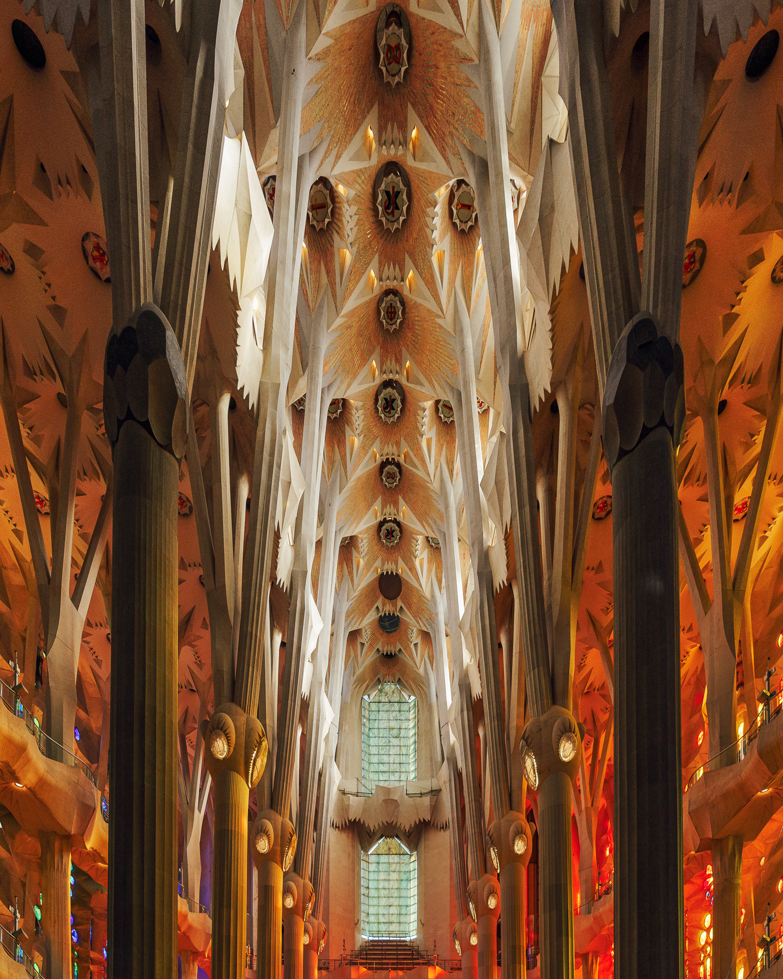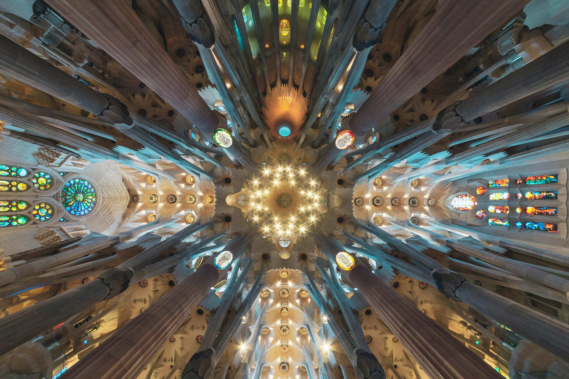 The Sagrada Família rises like a living sculpture, its organic forms and towering spires shaped by Gaudí’s devotion to nature and faith. Inside, colored light pours through vast stained-glass panels, shifting across stone columns that branch like a forest. Every angle reveals a dialogue between symbolism, geometry, and the unfinished ambition that continues to define this iconic basilica.